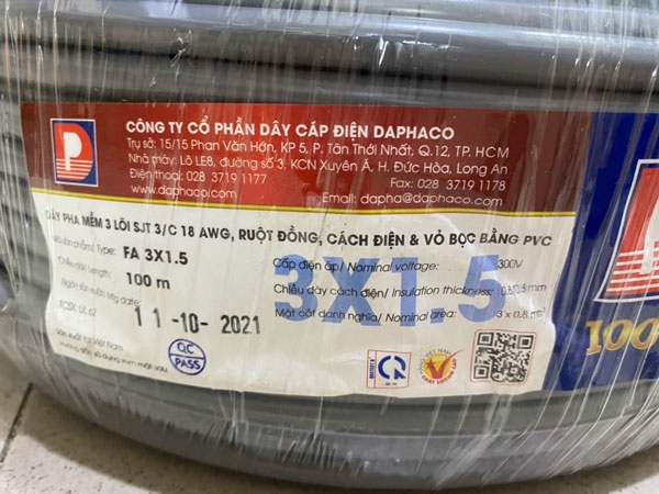 Sản phẩm gồm 3 lõi đồng 1.5mm², dẫn điện tốt, giảm thất thoát điện năng. Vỏ ngoài bằng nhựa PVC chịu nhiệt, cách điện cao cấp, bảo vệ an toàn cho người sử dụng. Dây đạt chuẩn điện áp 300/500V, phù hợp lắp đặt âm tường, dây nổi hoặc trong ống gen.