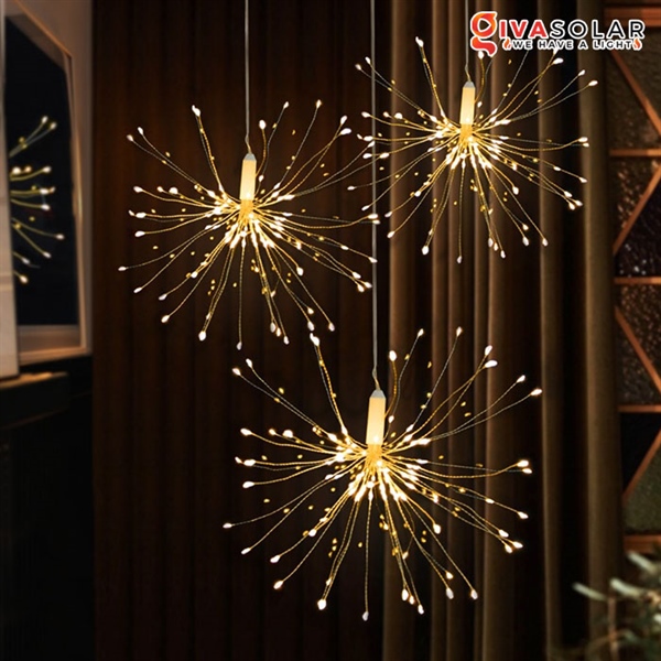 Thiết kế mô phỏng pháo hoa 3D, ánh sáng chuyển màu mượt mà, rất phù hợp trang trí phòng ngủ, quán café, nhà hàng, sân vườn, lễ hội hoặc trang trí Tết – Giáng sinh ✨