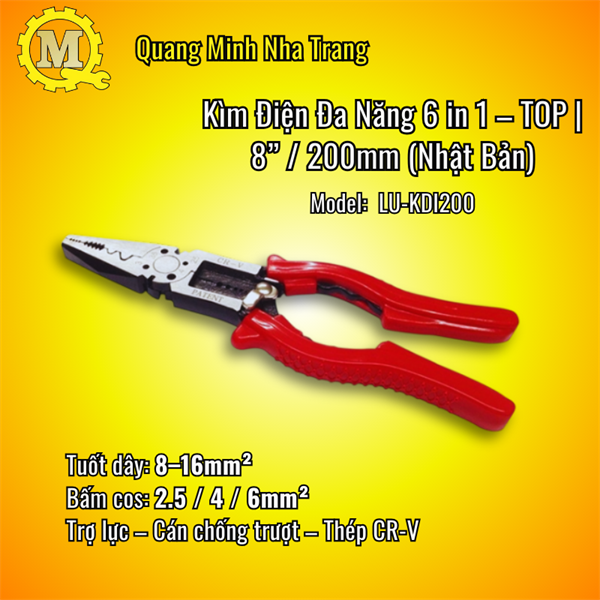 Kìm Điện Đa Năng 6 in 1 TOP LU-KDI200 – 8 inch (200mm) 1 cây kìm – xử lý gọn 6 việc!