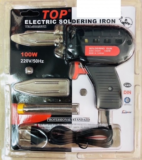 Mô tả sản phẩmMỏ hàn chì dạng súng TOP TEA-50056VN là dụng cụ hàn điện dạng súng, dùng nhiệt từ điện để làm nóng đầu mỏ hàn, giúp làm chảy thiếc hàn & nối linh kiện điện tử nhanh chóng. Với công suất 100W, thiết kế nhỏ gọn & tiện dụng, sản phẩm phù hợp cho cả thợ điện tử, kỹ thuật sửa chữa hoặc người dùng DIY (tự sửa chữa) tại nhà.