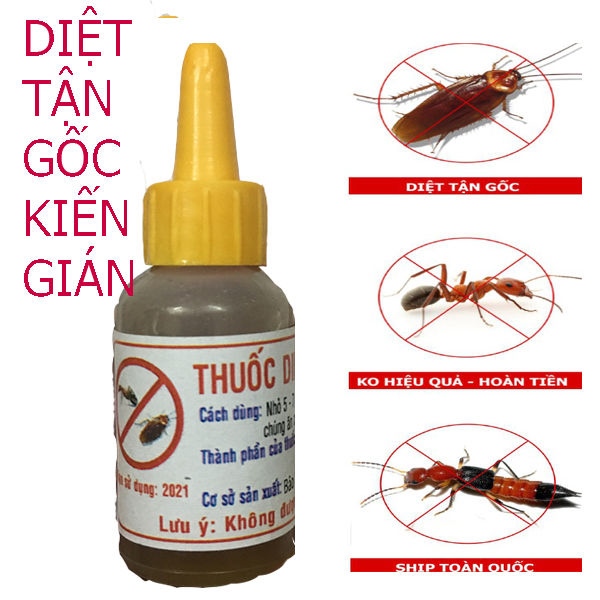 Tiện lợi, dễ dùngHướng dẫn cách dùng: Nhỏ giọt dọc theo đường đi hoặc nơi nhiều kiến gián và ruồi. Sau khi chúng ăn mồi thuốc sẽ quay về tổ, lan truyền và chết cả đànThành phần thuốc : Hóa chất sinh học, mật mía, hương phấn hoa và phụ gia bảo quản