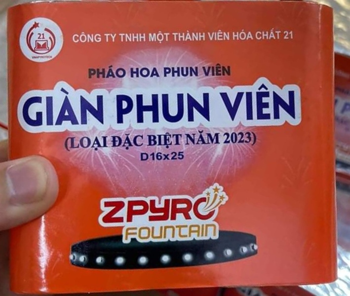 TÍNH NĂNG KỸ THUẬT– Mặt ngoài:Khô sạch, không nứt, thủng, gẫy, gập– Đường kính trong thân pháo:Ø16±1 mm– Khối lượng thuốc trên 01 đơn vị thân pháo: Không lớn hơn 150g– Thời gian hoạt động: Không lớn hơn 120s– Giới hạn âm thanh:Không lớn hơn 120dB– Chiều cao phun viên:Không lớn hơn 25m– Hiệu ứngSản phẩm hoạt động ổn định, khi cháy các viên màu được phóng lên không trung tạo thành chùm viên màu đỏ, xanh, vàng.– Hạn sử dụng: 24 thángHƯỚNG DẪN SỬ DỤNGSản phẩm Pháo hoa giàn phun viên đặc biệt Z121 (Giàn phun viên D16x25) chỉ sử dụng ở ngoài trời, không có mái cheMở túi PE, lấy sản phẩm ra ngoài và đặt sản phẩm thẳng đứng trên mặt phẳng cứng theo chiều mũi tên hướng lên trên.Phương pháp kích hoạt: Dùng ngọn lửa đốt dây mồi cháy, sau đó lùi ra xa với khoảng cách lớn hơn 10m, đợi sản phẩm hoạt động.Giàn pháo hoa phát hỏa xong, để nguội đến nhiệt độ môi trường hoặc tưới nước cho ướt toàn bộ giàn ống phóng (không còn tàn lửa) sau đó bỏ vào thùng rác.LƯU Ý KHI SỬ DỤNGKhông sử dụng pháo hoa giàn phun viên đặc biệt Z121 ở nơi có chất dễ gây cháy (xăng, dầu, khí ga,…). Khi sử dụng, không hướng sản phẩm vào người, động vật hoặc vật liệu dễ gây cháy, nổKhông để sản phẩm bị đổ khi sử dụng. Người xem phải đứng cách xa sản phẩm không nhỏ hơn 10mPhải lót vật liệu chống cháy hoặc làm ẩm xung quanh với khoảng cách lớn hơn 1m khi đặt sản phẩm lên các vật liệu dễ cháy (gỗ, thảm,…)Không dùng sản phẩm ở trong nhà hoặc không gian có mái che.Trẻ em sử dụng phải có sự giám sát của người lớn.CÂU HỎI THƯỜNG GẶP1. Có cần bóc lớp giấy bạc bên trên khi sử dụng không?